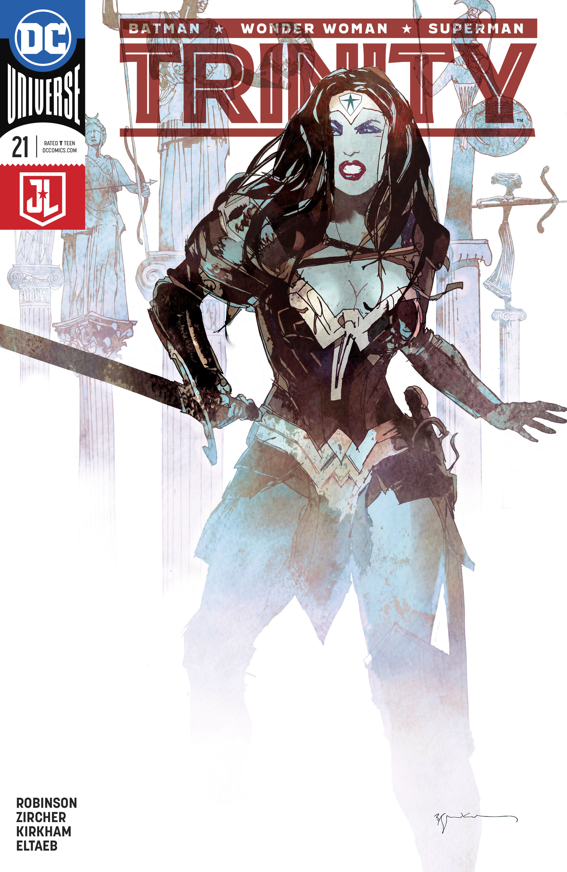 "MAN DOWN" part two! Deimos and his armies have besieged the Trinity-so why is Steve Trevor helping the enemy?! Wonder Woman, Batman and Superman fight their way through one monstrous magical menace after another as Dark Strike's stolen Skartaran weaponry is unleashed!