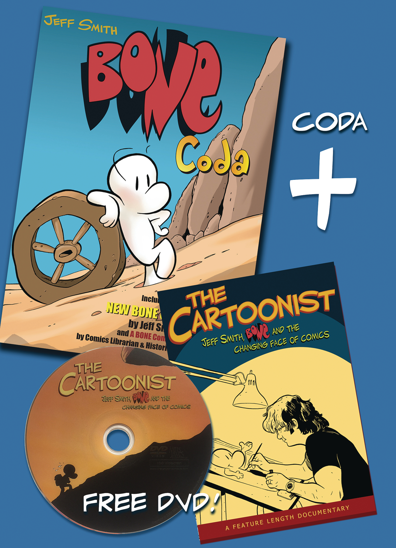 The Cartoonist: Jeff Smith, Bone, and The Changing Face of Comics! Through interviews with Smith, Scott McCloud, Colleen Doran, Paul Pope, Terry Moore, Harvey Pekar and others, this bonus DVD takes an inside look at the story, art and commerce of