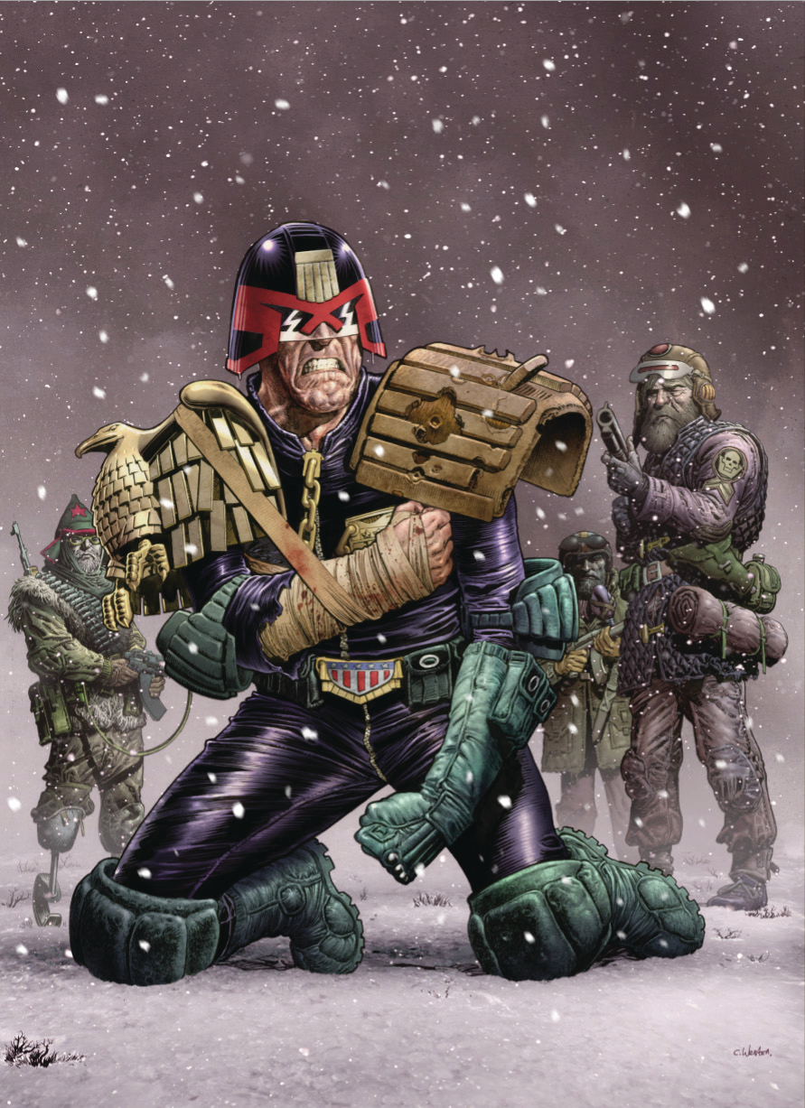 Prog 2073 continues with all barrels blazing! Terrorist group the Sons of Booth plot against Justice Department in new Judge Dredd thriller "Flaws" by T.C. Eglington and Staz Johnson; vampire bounty hunter Durham Red is on the trail of a missing mother in "Born Bad" by Alec Worley and Ben Willsher; Atalia Jaegir returns to Nu Earth for "In the Realm of Pyrrhus" by Gordon Rennie and Simon Coleby; Psi-Judge Anderson heads into the Undercity in "Undertow" by Emma Beeby, David Roach, Mike Collins and Cliff Robinson; and there's an extradimensional threat that unites both mankind and Wurms in