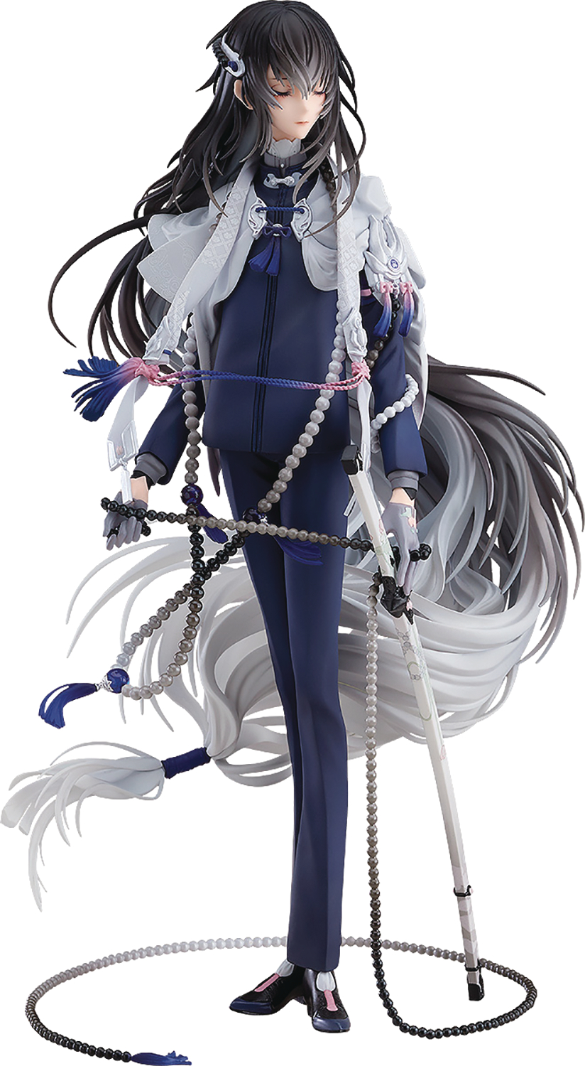 Touken Ranbu -ONLINE- comes a 1/8-scale figure of Juzumaru Tsunetsugu, one of the Five Great Swords, based on his standard standing illustration from the game. His gentle, relaxed and yet powerful appearance has been captured in intricate detail, with his iconic long hair sculpted with great care to capture each and every strand as faithfully as possible, together with meticulous paintwork to preserve the unique gradient.
