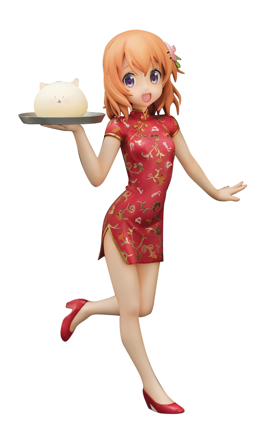 Gochuumon wa Usagi Desu ka?)! Cocoa is incredibly cute and eye-catching in her red Chinese dress and heels. Much like the title of the anime, she's carrying out a tray holding Tippy, the angora rabbit, as if he's actually on the menu.