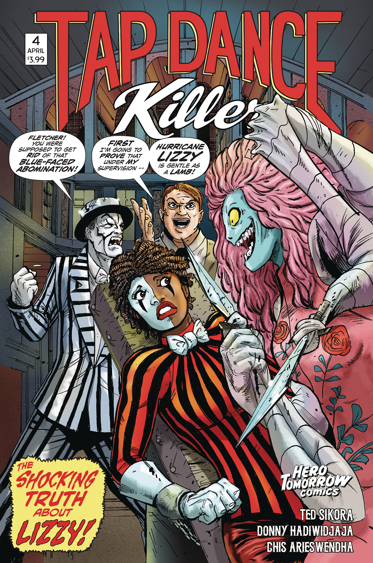 Nikki St Clair, the Tap Dance Killer, is forced to make a split-second decision that will change everything! Meanwhile another bizarre chapter unfolds in the evolution of the creepiest character in comics, Hurricane Lizzy! Don't miss "BOOM BABY!"