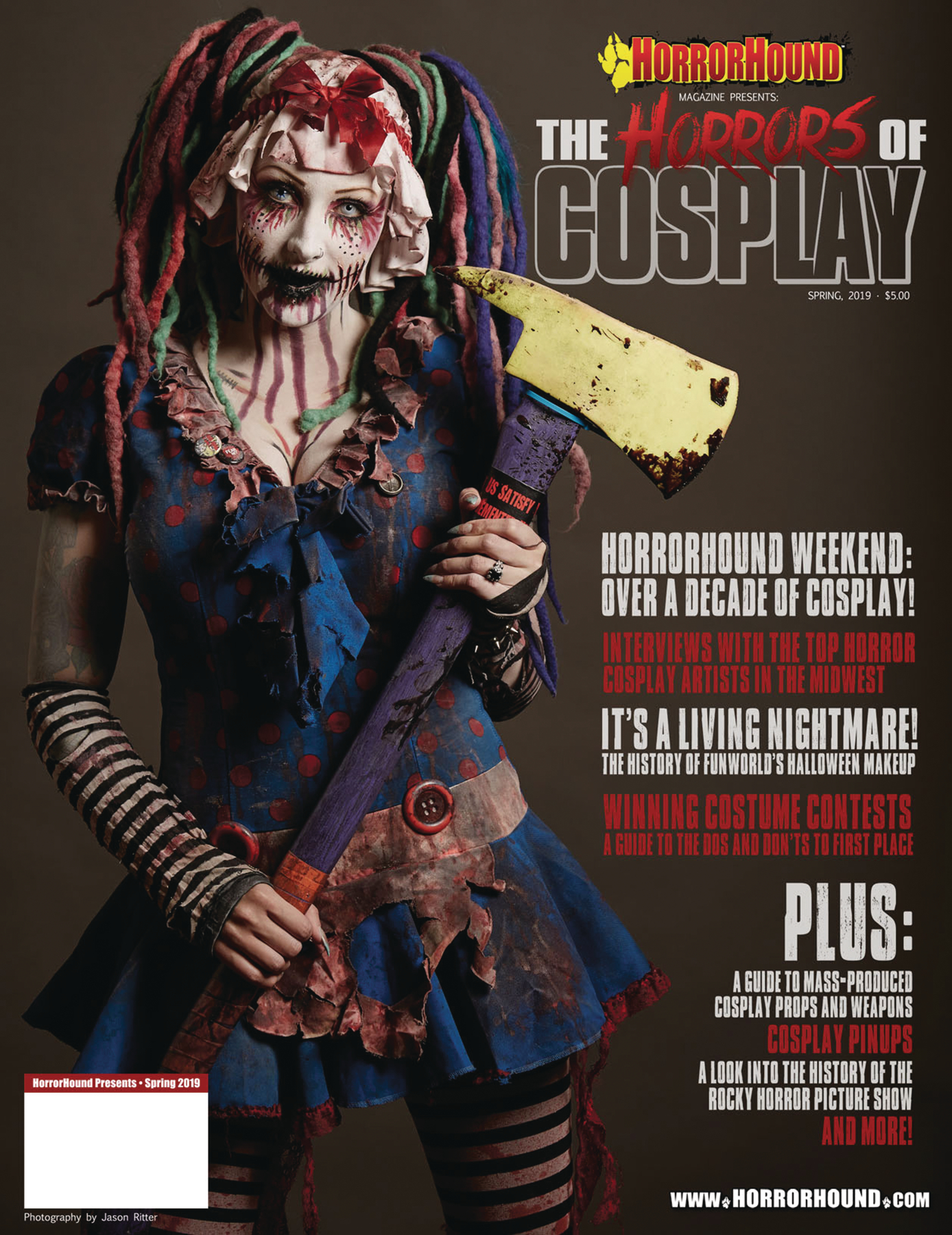 HorrorHound special one-shot spotlights the Horror's of Cosplay! We take a look at, an interview, the most popular cosplay celebrities within the world of the dark and macabre art of the horror genre. A guide to how to win a costume contest is paired with various articles on makeup, cosplay prop and make-up manufacturers (including Funworld, NECA, Trick or Treat Studios, and many more). On top of this, this special issue also includes a retrospective article on one of the most popular "cosplayed" movies of all time: