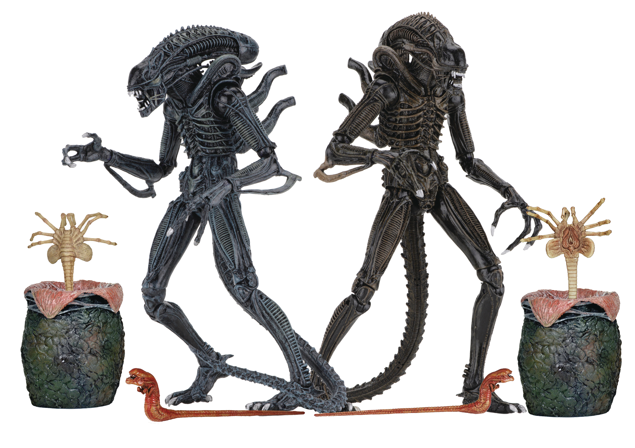 Aliens movie, the Warrior Alien gets the Ultimate action figure treatment! The assortment includes both blue and brown Aliens. NECA has upgraded the deadly creatures, which now have added articulation and plenty of extras: each comes with a facehugger, chestburster and egg accessory. The Warrior stands over 9" tall (in scale with the 7" tall figures) and has over 30 points of articulation and bendable tail. Comes in collector-friendly deluxe window box packaging with opening flap.