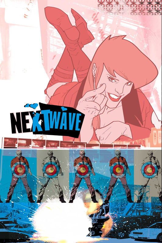 ATTENTION SCUM!! It's a special issue of NEXTWAVE. The characters learn the values of compassion, kindness and 5-megaton nuclear weapons! KABOOOOMM!!!! Forget about compassion and kindness, NEXTWAVE #3 has dirty cops, giant deranged robots, enormous guns and schoolchildren! Pulitzer Prize, HERE WE COME!!!