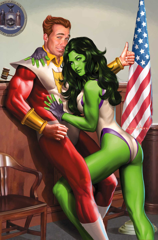 She-Hulk's firm is dealing with their first superhuman sexual assault case. Their client? Eros of Titan, the space-faring Avenger called Starfox! And when emotions get over-heated at the office-- expect a love triangle or two to finally come to a head! What will this mean for Pug, She-Hulk, and John Jameson? And who (or what) is Awesome Andy falling for?!