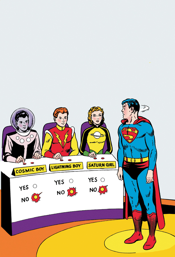 A massive black-and-white volume collecting classic tales of the Legionnaires, from ADVENTURE COMICS #247, 267, 282, 290, 293, and 300-328, ACTION COMICS #267, 276, 287 and 289, SUPERBOY #86, 89, 98 and 117, SUPERMAN 147, SUPERMAN ANNUAL #4, and SUPERMAN'S PAL, JIMMY OLSEN#72 and 76!