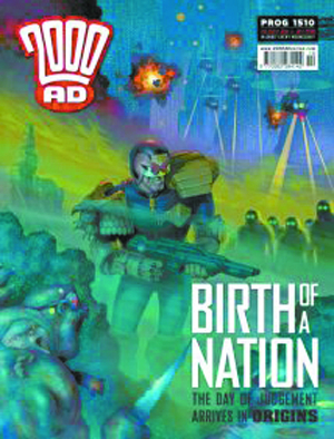 Future cop Judge Dredd celebrates thirty years of zero tolerance law enforcement this month with a double-length story in Prog 1527, plus there's Celtic calamity when the Scots celebrate in "Tartan Terrors" by Gordon Rennie and Jock (
