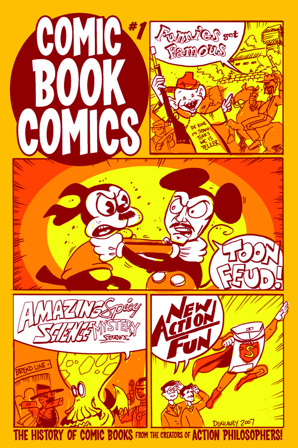 think you know comics history! The epic - and insane! - story of comic books, manga, and graphic novels, told as a comic, in the inimitable, irreverent, and award-winning Action Philosophers style, begins here! Before there could be comics, there has to be newspaper strips, animated cartoons, and pulp magazines. Thrill to publishing giants William Randolph Hearst and Joseph Pulitzer duking it out over The Yellow Kid! Tremble at the war between Walt Disney and Max Fleischer for animation domination! Follow the bizarre trail of Jerry Siegel and Joe Shuster's first superhero from sci-fi pulp to comic strip to the birth a new medium! Plus, the early years of Jack Kirby, Will Eisner, Winsor McCay, and Joe Simon!
