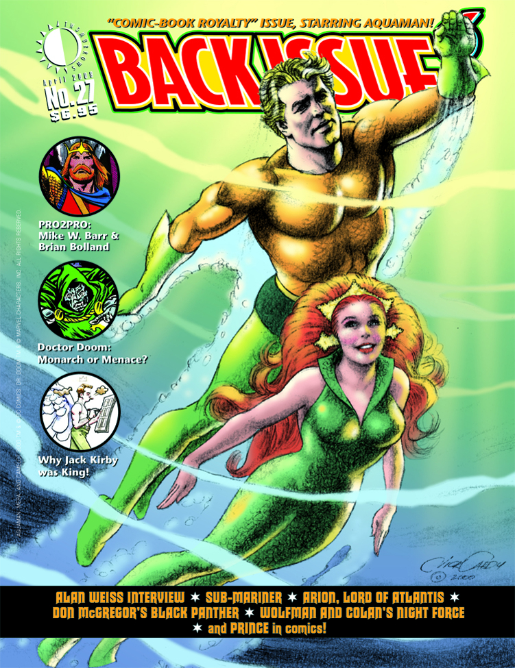 The turbulent waters of the '70s/'80s career of DC's King of the Seven Seas, Aquaman, are explored, as are those of his Marvel counterpart, Prince Namor the Sub-Mariner. Mike W. Barr and Brian Bolland discuss King Arthur and
