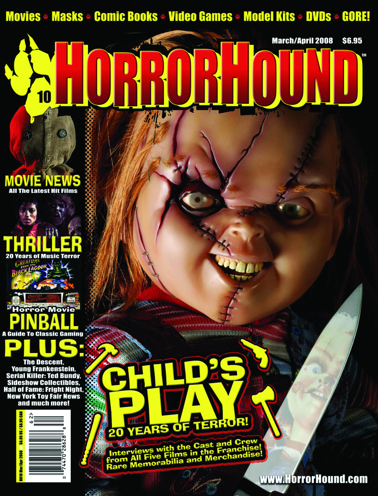 HorrorHound covers the series with a special retrospective article on the history of the franchise, as well as interviews with the cast and crew, articles on the merchandising of Chucky, Tiffany, and Glen, plus a special history guide to the killer toys that have haunted us all! Plus, movie news from the year's biggest films including