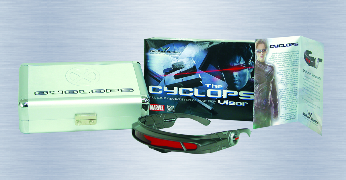X-Men logo and the name "Cyclops" etched on the lid. The box's lid interior contains a detailed schematic of the visor, explaining the technology and the ruby-quartz mechanisms required to control Cyclops' energy. A full-color Certificate of Authenticity is included.