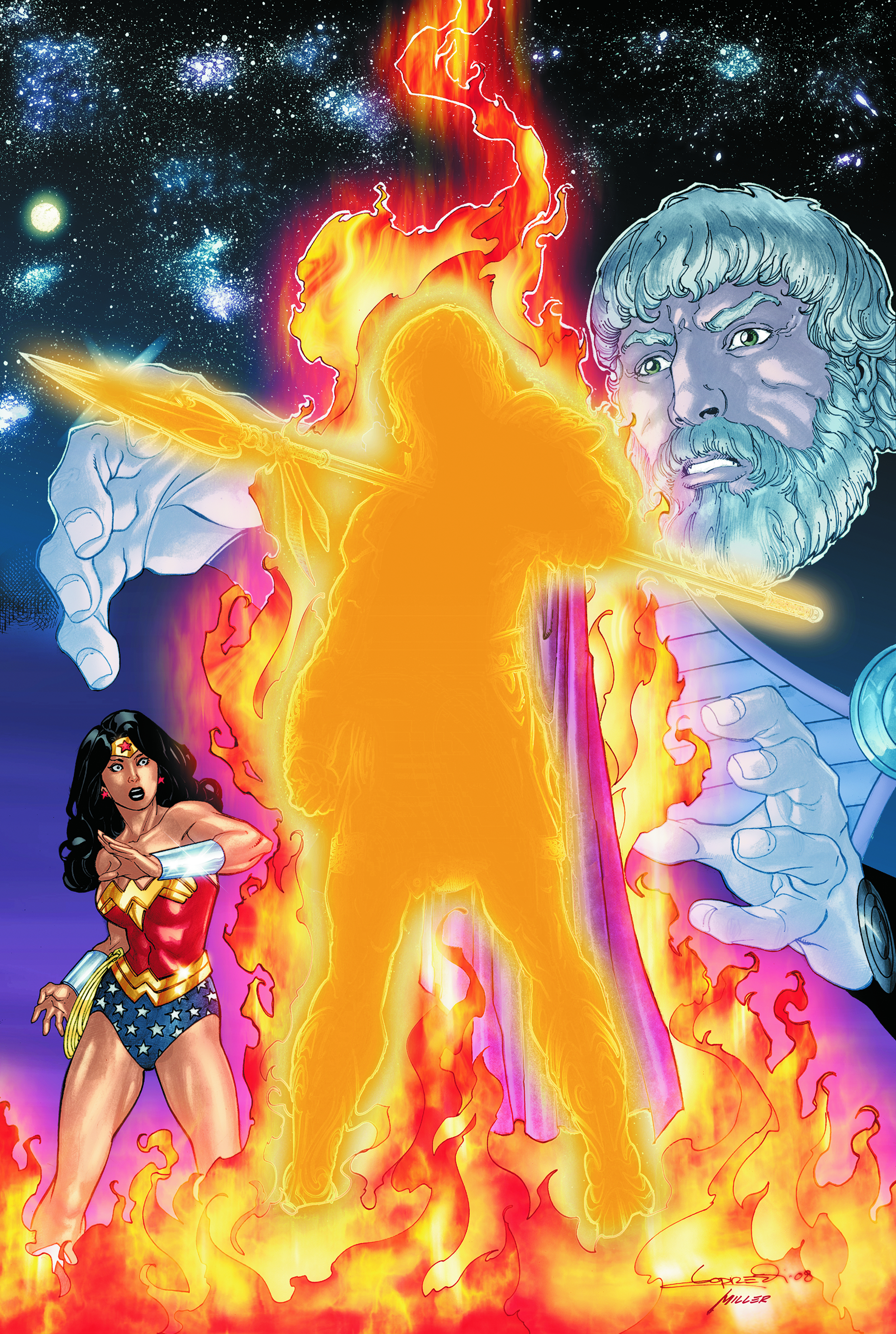 "Rise of the Olympian" Part 5! Created by Zeus himself, the Olympian is charged with spreading the message of peace and unity throughout the world - by any means necessary. Is a battered and bruised Wonder Woman up to the challenge of stopping his brutal ways? And does the world even want her to? All this plus a surprising revelation about the true origin of Genocide, the creature that beat Wonder Woman!