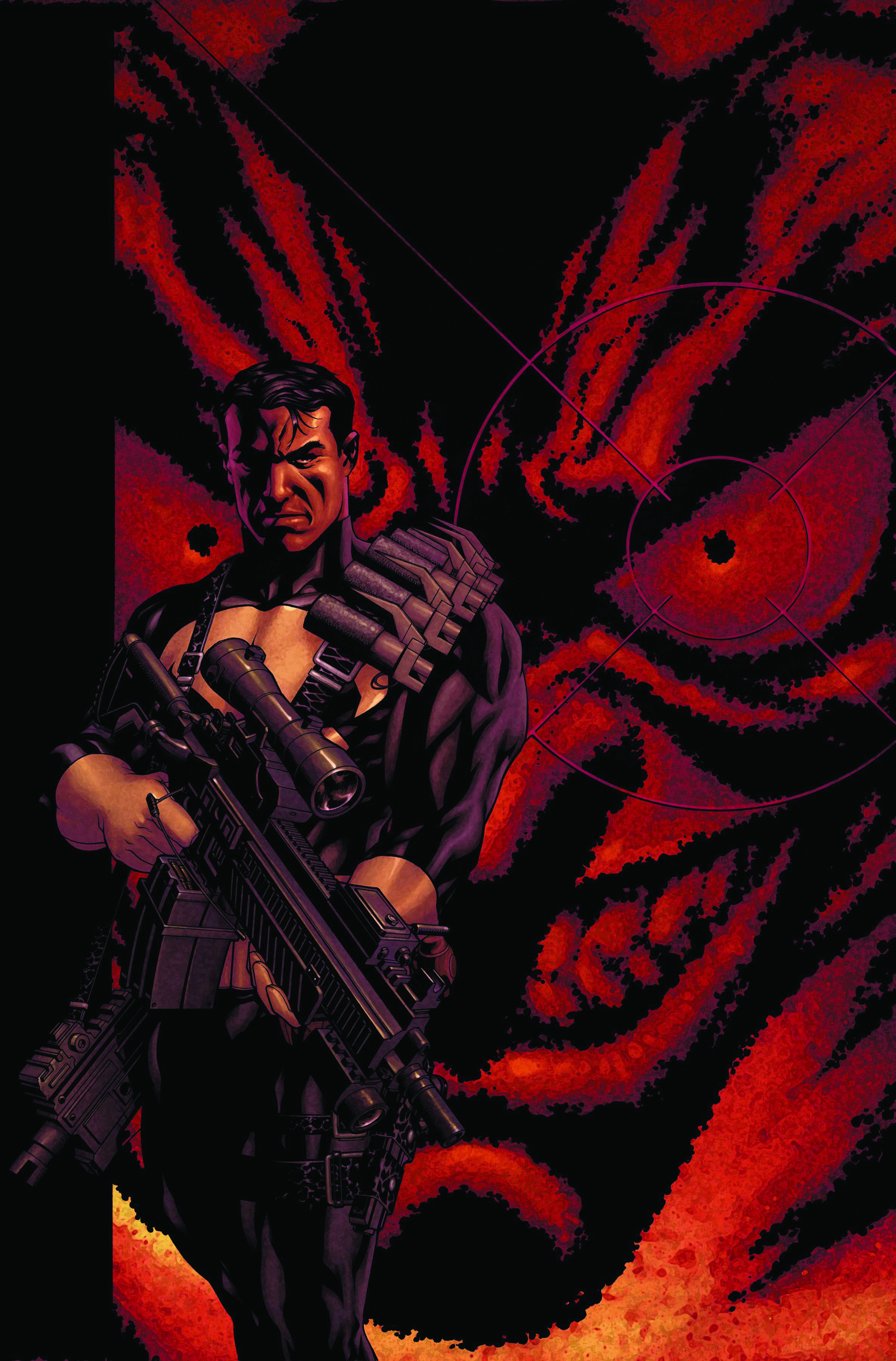 "LIVING IN DARKNESS," PART 3-The only thing standing between the new king of crime and his dark reign of New York is a lone soldier doing what none of the capes will: taking out the bad guys permanently. Frank Castle has torn open an artery of the most feared crime family in the history of New York, and it will not go unanswered. A lesson must be taught - a bloody, public lesson. How can the Punisher possibly contend? With an arsenal of the most powerful weapons in the Marvel Universe - and a smile.