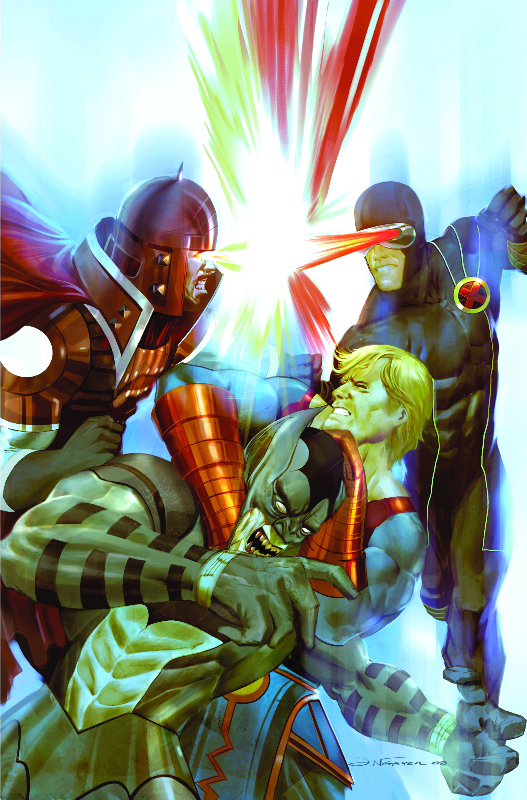 Guest-starring the X-Men! Ikaris, joined by the full power of the mighty mutants, faces his nemesis Druig and his vile Confederation! At the foot of the sleeping colossus known as the Dreaming Celestial, a battle of titans erupts! The stakes? Not only the innocent citizens of San Francisco, but no less than the future of all life on planet Earth!