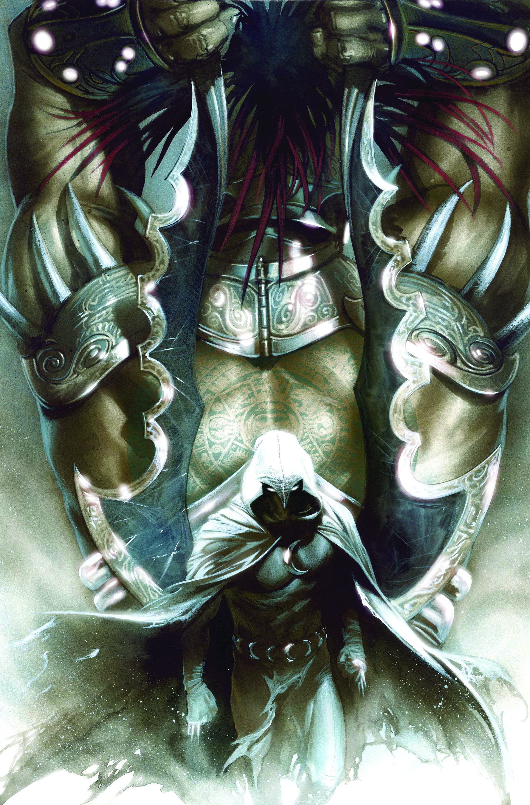 "DOWN SOUTH," PART 2-Marc Spector may be dead, but Moon Knight is very much alive -- and in a world of trouble. After rescuing a land baron's daughter from corrupt Federales, the fugitive vigilante is suddenly thrust into the crosshairs of Mexico's deadliest assassins looking to collect the bounty on the girl's head. But there are other predators prowling the dark underbelly of Mexico City, and not all of them have their sights on the innocent. The Punisher has traveled down south on the trail of some Russian mobsters, and he's just stepped onto blood-soaked turf that bears the unique signature of another killer. His name is Toltec, and if you've seen him, you're dead.