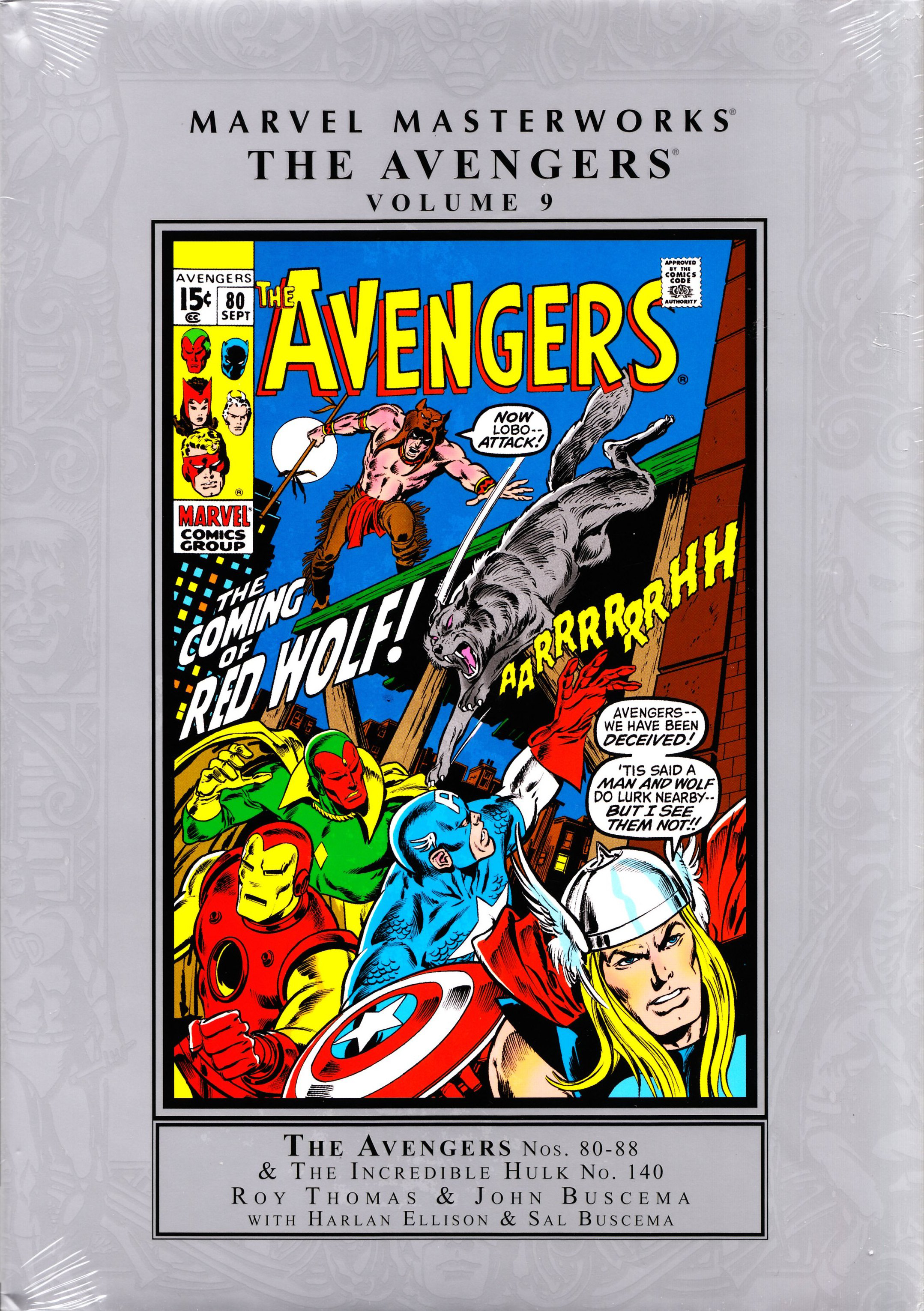 Rascally Roy Thomas and Big John Buscema are back again with another batch of true Avengers classics! They've packed so many fantastic firsts into these pages, there's no time to delay so here we go: First you'll meet a new face in the Marvel Universe, the Native American hero, Red Wolf! Then, it's all-out invasion when the Zodiac take over Manhattan, followed by the first appearance of the Defender-to-be, Valkyrie and the Lady Liberators. Then comes a set of other-dimensional threats that helped defined a decade: the sword-and-sorcery menace, Arkon, and the evil super-team, the Squadron Sinister. Follow that up with the origin of the Black Panther, and a crossover classic penned by Roy and the award-winning titan of speculative fiction, Harlan Ellison, that pits the Avengers with the Hulk in an adventure that changed ol' Greenskin forever. With guest-star appearances by Peter Parker, Aunt May, the Fantastic Four, Black Widow, the Inhumans' Medusa, Professor X and Roy Thomas himself there's no denying that the entire Marvel Universe has fallen in for this one, so reserve that copy today, True Believer! Collecting AVENGERS #80-88 & INCREDIBLE HULK #140.
