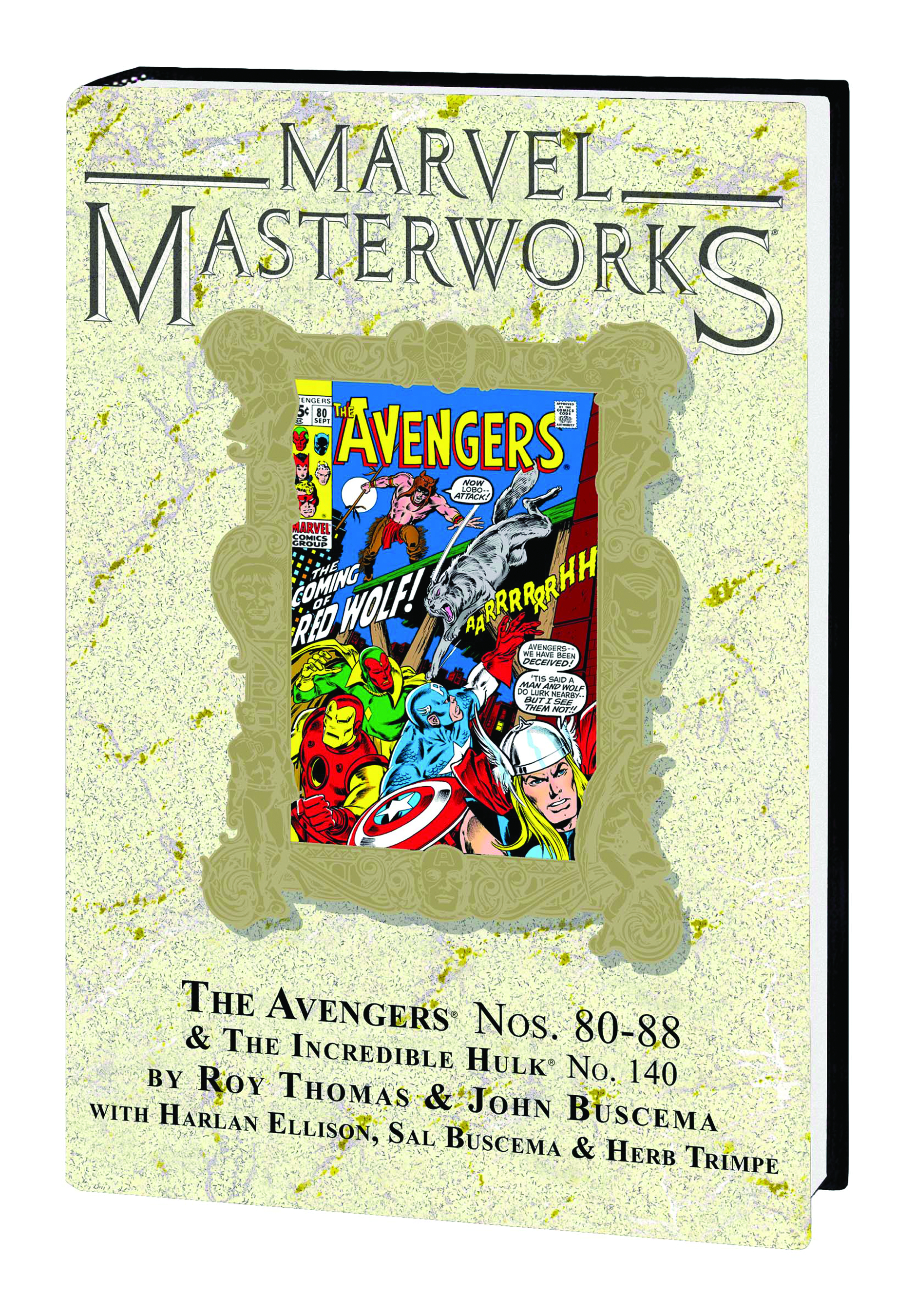 Rascally Roy Thomas and Big John Buscema are back again with another batch of true Avengers classics! They've packed so many fantastic firsts into these pages, there's no time to delay so here we go: First you'll meet a new face in the Marvel Universe, the Native American hero, Red Wolf! Then, it's all-out invasion when the Zodiac take over Manhattan, followed by the first appearance of the Defender-to-be, Valkyrie and the Lady Liberators. Then comes a set of other-dimensional threats that helped defined a decade: the sword-and-sorcery menace, Arkon, and the evil super-team, the Squadron Sinister. Follow that up with the origin of the Black Panther, and a crossover classic penned by Roy and the award-winning titan of speculative fiction, Harlan Ellison, that pits the Avengers with the Hulk in an adventure that changed ol' Greenskin forever. With guest-star appearances by Peter Parker, Aunt May, the Fantastic Four, Black Widow, the Inhumans' Medusa, Professor X and Roy Thomas himself there's no denying that the entire Marvel Universe has fallen in for this one, so reserve that copy today, True Believer! Collecting AVENGERS #80-88 & INCREDIBLE HULK #140.