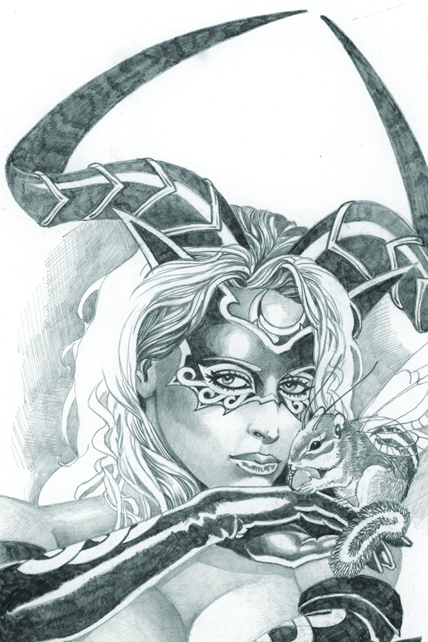 Tarot #55 (either Cover) and features a pencil rendering of Tarot and her Faerie Furry Friend, entitled "Chipmunk Faerie." This 6.5" x 10" lithograph is signed by artist and is limited to a print run of 500.