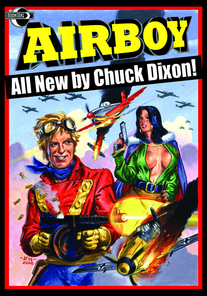 One of the most asked-about character returns is finally here! The ace fighter pilot, and his one-of-a-kind plane, return with an all-new story by action-master Chuck Dixon, in a never-before-told adventure. Be here for the first white-hot meeting between Airboy and that gorgeous femme fatale Valkyrie. Intrigue, thrills, volatile physical chemistry, and cinematic aerial combat mix in an explosive combination! With a retro cover by Joel Naprstek and a modern cover by Steve Bryant.