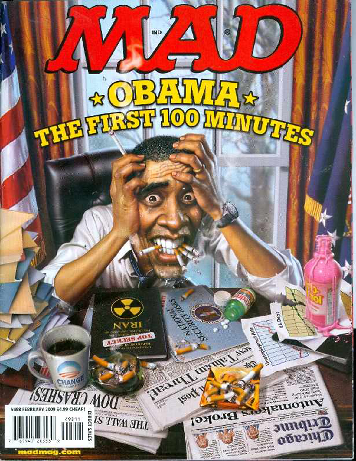 This Obama-riffic issue features articles parodying the election, inauguration and first hours of the Obama Presidency, as well as unused Obama cover concepts.