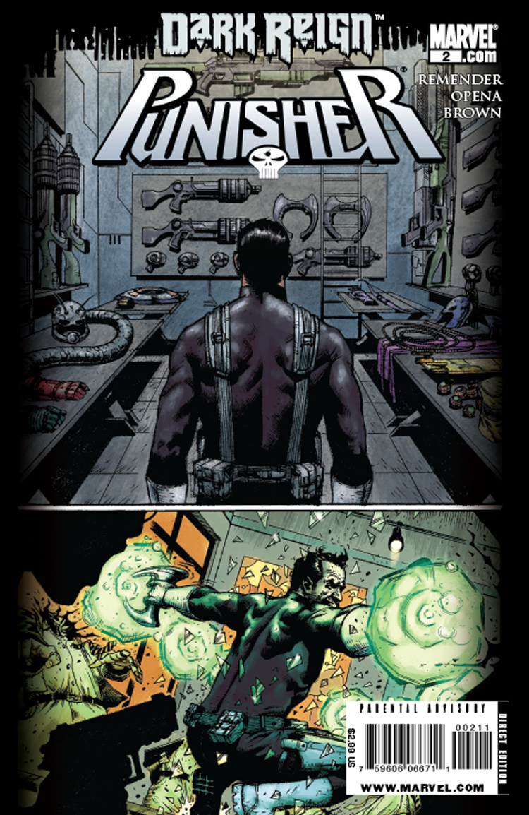 From Marvel Comics. Organized crime has New York City in a death grip that, thanks to the powerful propaganda machine of the corrupt new government, is being swept under the rug. To stem this dark tide, Frank Castle must embark on a bloody public campaign that will expose the dark underbelly of the supposedly squeaky-clean regime to the world, and embrace a new sidekick who'll help him get out the message. Scheduled to ship 03/25/09. (161)