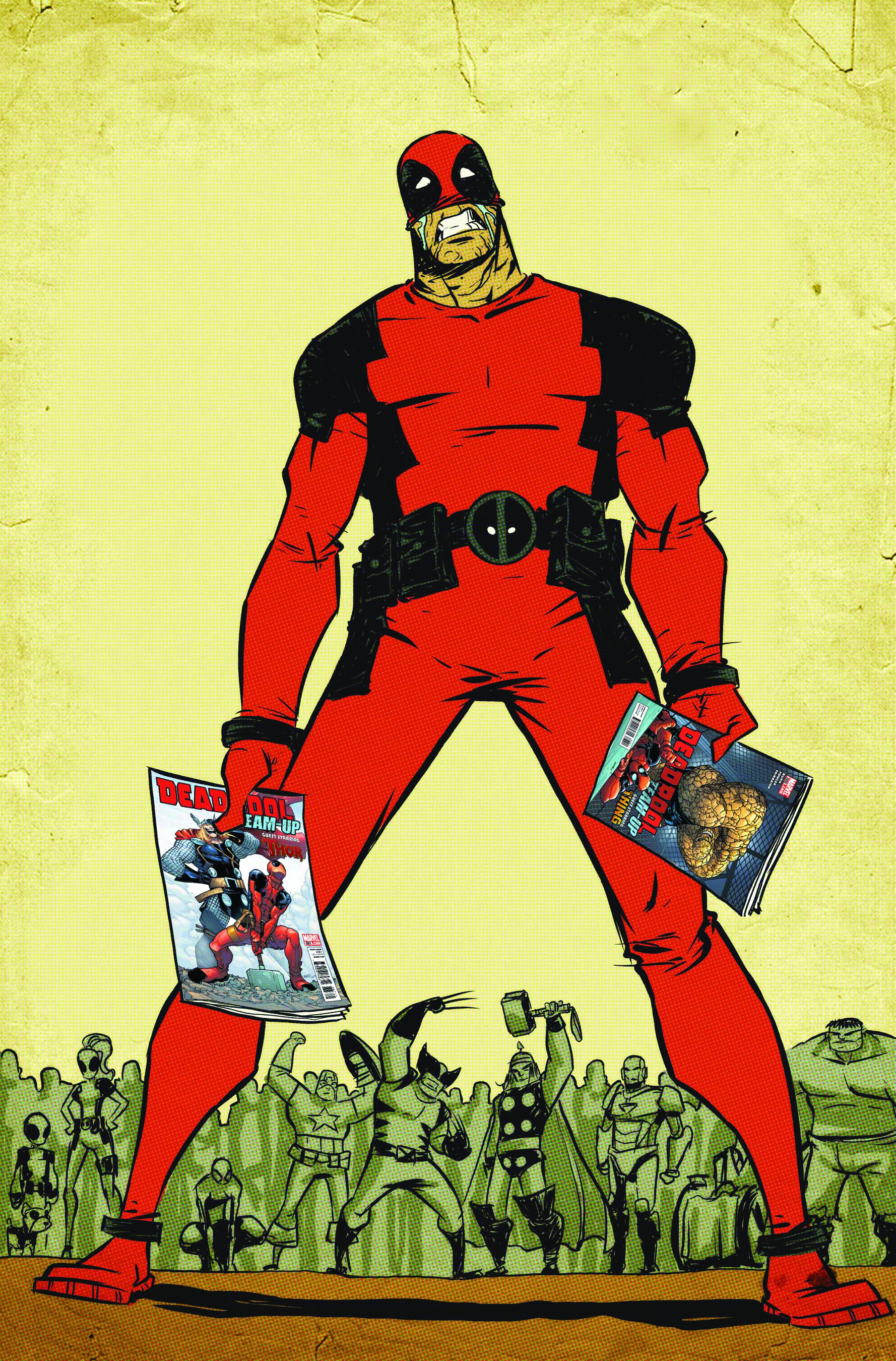 The country is in the middle of an economic meltdown and everyone is feeling the burn, especially your favorite Merc with a Mouth. Deadpool realizes that there's no government bailout for super-powered mercenaries and when clients stop paying up, he's forced to do the unthinkable... Look for a job. Luckily, Galactus has a position open in the Herald department. Don't miss the face-melting final issue of the series that shook the comic book world to it's very core.