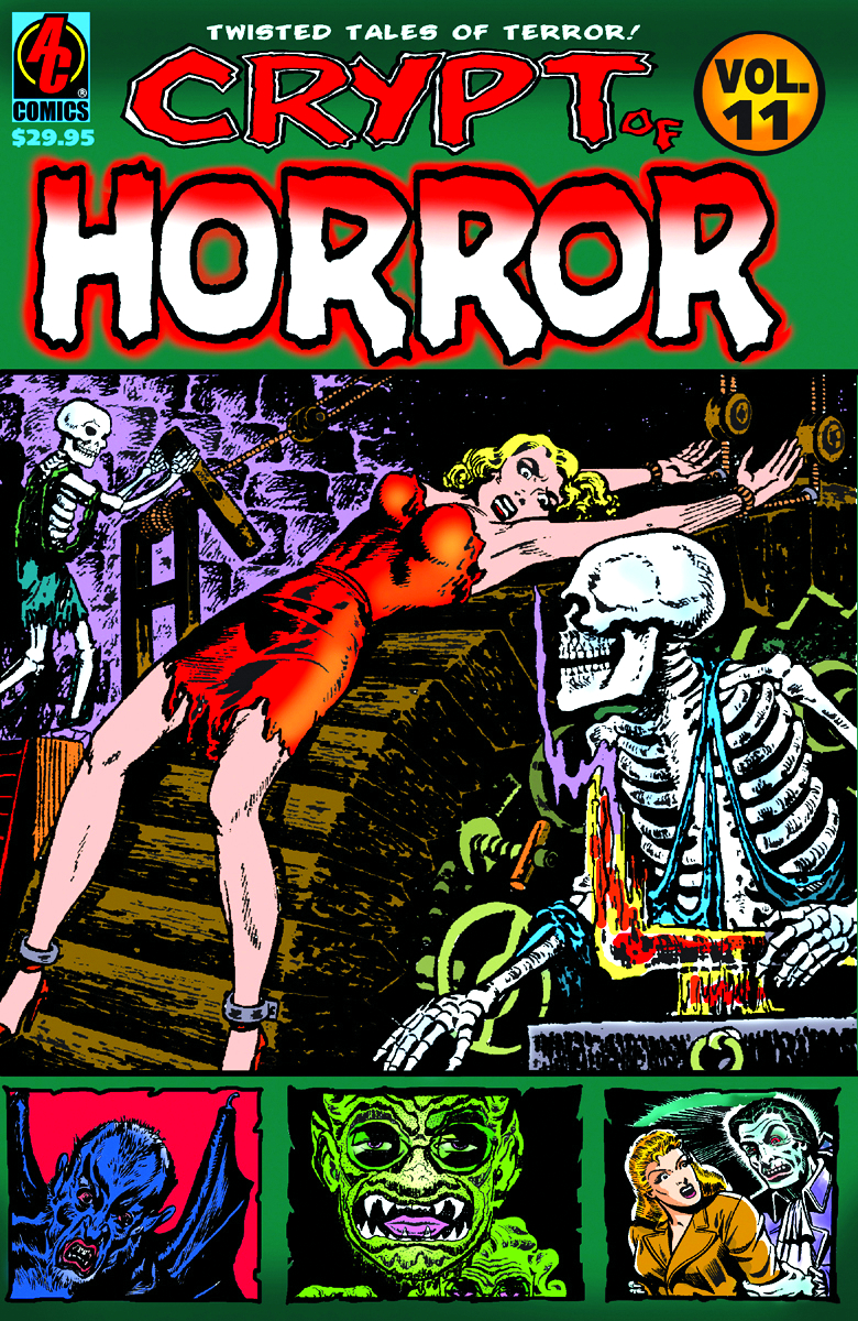 Crypt of Horror includes "The Creekmore Curse," "The Vampire's Bane," "Demon Master," "Zombies' Eyes," "Within The Tomb Of Terror," "Howl Of The Hunter," and more! Art by Nostrand, Feldstein, Kamen, Ayers, Powell, and other greats.