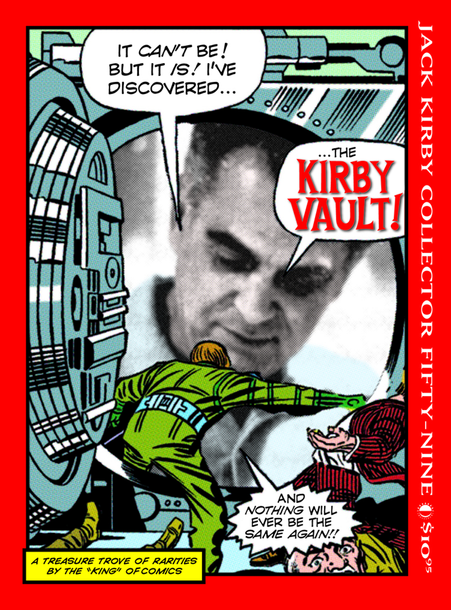 The Jack Kirby Collector #59 shifts to a new format and opens "The Kirby Vault", unlocking a treasure trove of rarities by the "King" of comics! There's personal correspondence from Jack to fans and co-workers, private photos and accounts from family and friends' interaction with Kirby, a color gallery of his amazing collage work, rare art from Marvelmania, bootleg album covers featuring Kirby art, private sketches, and other artifacts. Plus: A transcript of a never-before released 1969 visit by San Diego fans to the Kirby home (where Jack answers all the questions you would ask if you were there in '69)!