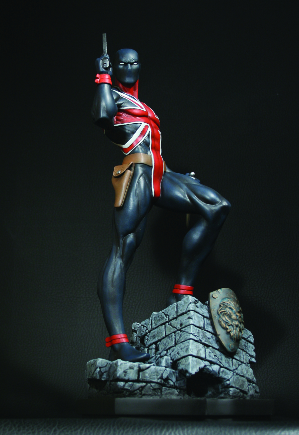 A Bowen Designs Sculpt! Imprisoned by the Germans during World War II, British aristocrat Brian Falsworth was given a dose of the Germans' attempt to recreate the super-soldier serum that had created Captain America. To his surprise, Falsworth discovered that his strength, speed, stamina, and reflexes were all enhanced and, escaping from his German captors, he returned to England and became Britain's costumed super soldier, the Union Jack! This 12 1/2" tall statue sculpted by the Kucharek brothers brings this dynamic British hero to life!