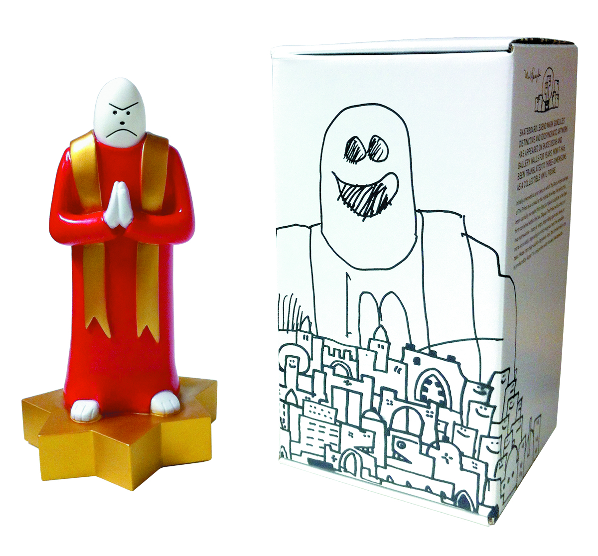 From Super 7! Skateboard legend Mark Gonzales' distinctive artwork has piqued the interest of skaters and art fans alike for decades. The Priest illustration has a long history, as the original black & white image was first adapted into a three-dimensional sculpture in which castings served as a canvas for Gonzales' original art. Now the Priest has been carefully recreated from the original sculpture into a high-quality designer vinyl toy. Standing at over 10" tall, you may display your Priest with a choice of two expressions - happy or angry, determined by your mood. This limited-edition run was produced in Tokyo, Japan, and is collaboration between Super7 and Krooked Skateboards. Each figure comes packaged in a deluxe collector's box, illustrated throughout with Gonz artwork.
