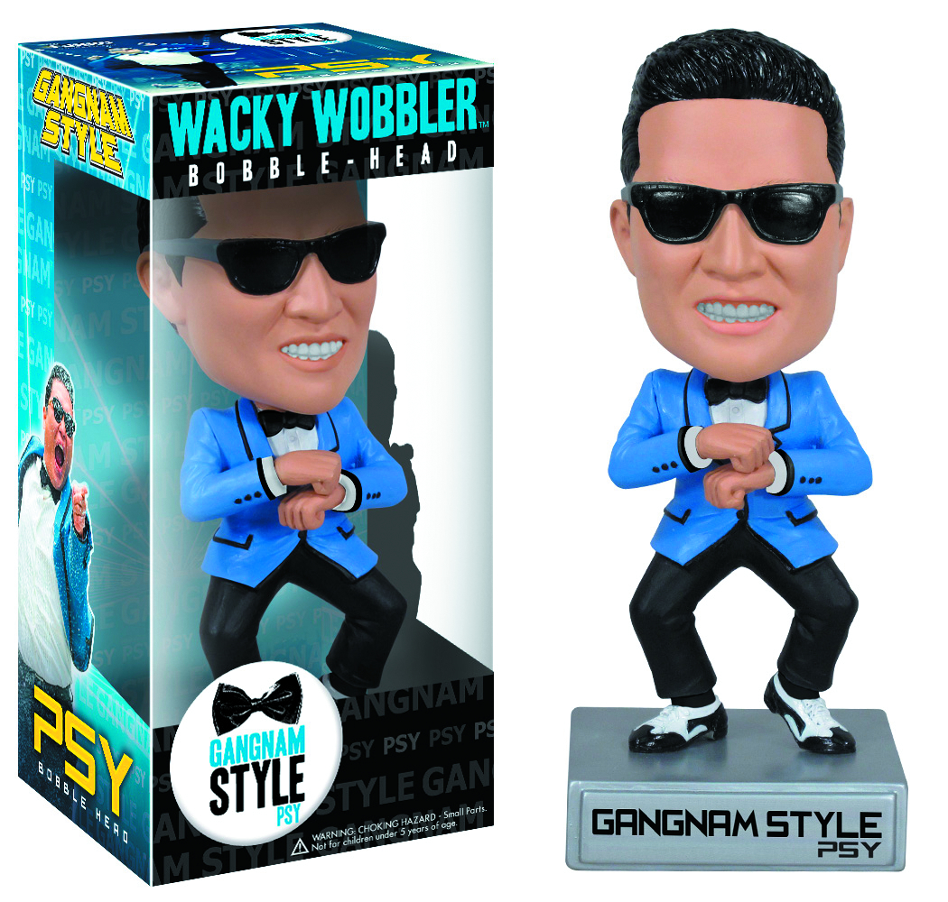 South Korean musician PSY became a worldwide sensation when the music video for his latest single, "Gangham Style," went viral, and the dance moves from the video became the stuff of legend! Now PSY gets the bobble head treatment with Funko's