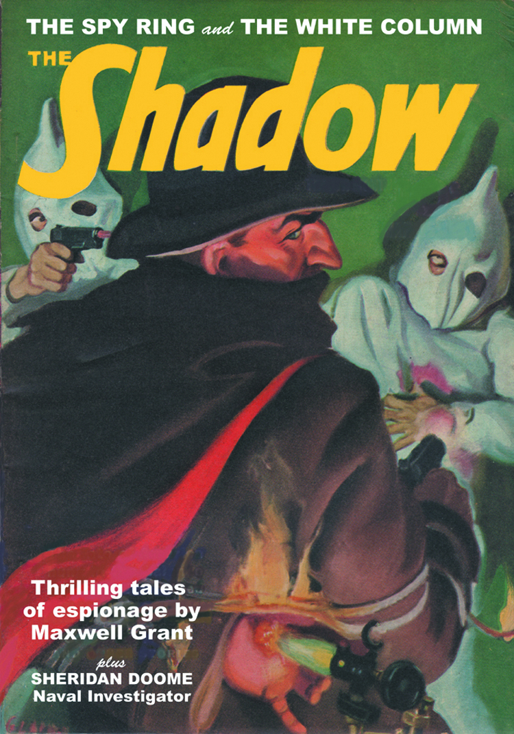 The Knight of Darkness battles saboteurs and Fifth Columnists in two classic pre-War tales of espionage by Walter B. Gibson and Theodore Tinsley writing as "Maxwell Grant"! First, The Shadow teams with Myra Reldon and the real Lamont Cranston to defeat Velma Thane and her international "Spy Ring"! Then, America's future hangs in the balance as Nazi saboteurs of "The White Column" attempt to cripple our nation's military defenses! BONUS: a