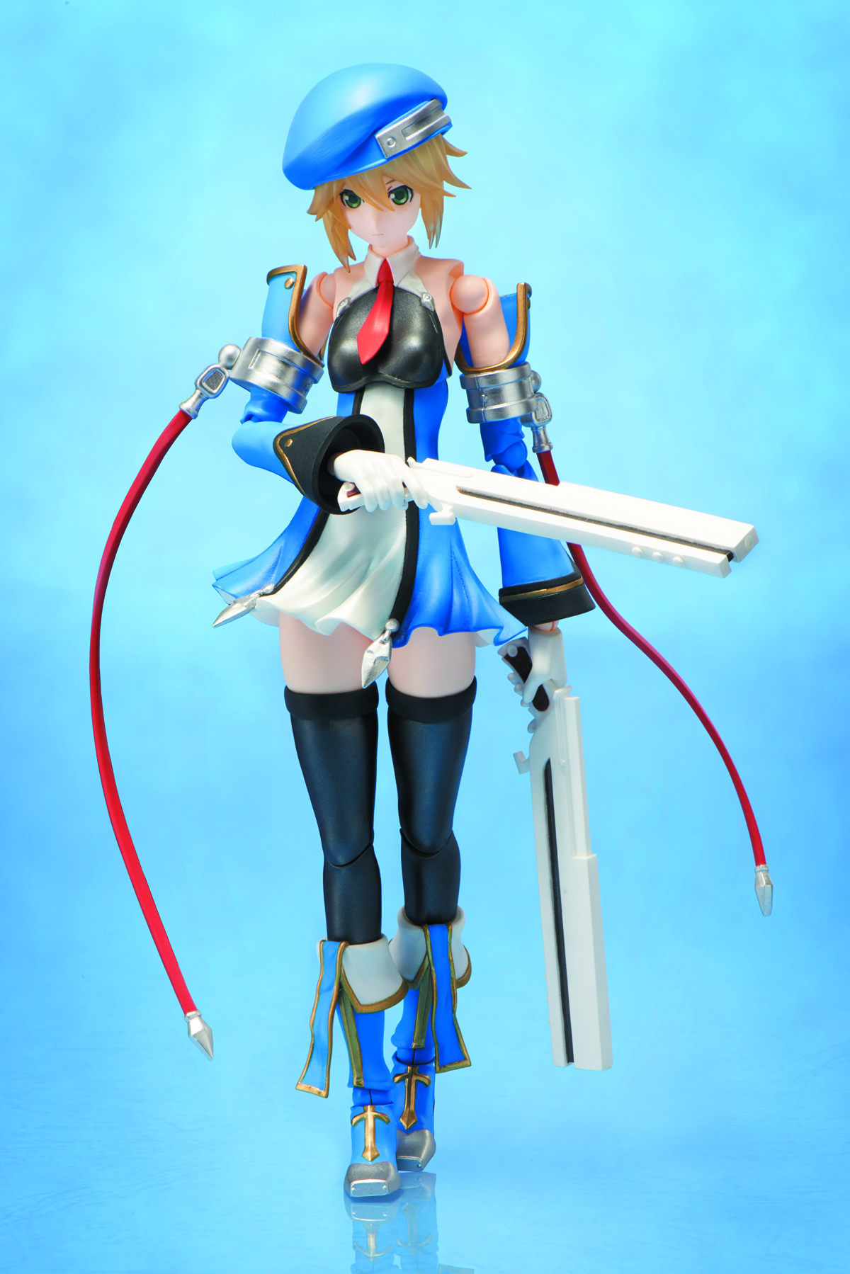 Noel Vermillion. Timed with the release of the new anime and PlayStation 3 game, Noel has been captured in stunning form and boasts cutting-edge articulation. This deluxe action figure will feature an extensive array of option parts and accessories to accurately recreate sequences from the game, as well as alternate facial expressions to display her in different situations. Interchangeable hair parts allow for portrayal of character without her hat, two interchangeable face parts (screaming and taking damage) are featured for the depiction of various situations. Two Bolverk gun accessories with optional shot effect parts are also included, as well as a multitude of interchangeable hands. Figure stands 5 1/2" tall. Window box packaging.