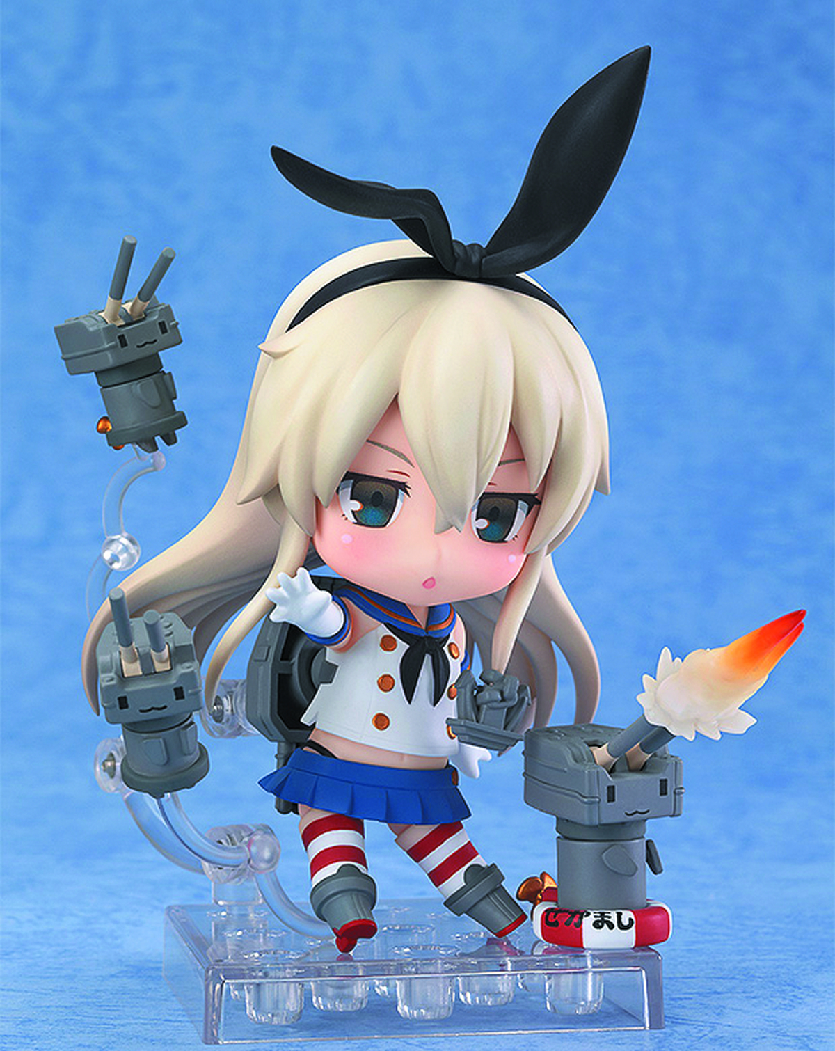 Shimakaze, one of the cutest and fastest battleships you'll ever see! Shimakaze comes with various optional parts, including three of the cute "Rensouhou-chan" naval artillery cannons! Other optional parts include an alternate body to pose her in her 'half damage' form, torpedo parts to fire on her enemy and even shooting effect parts for her cute little cannons. Recreate the world of