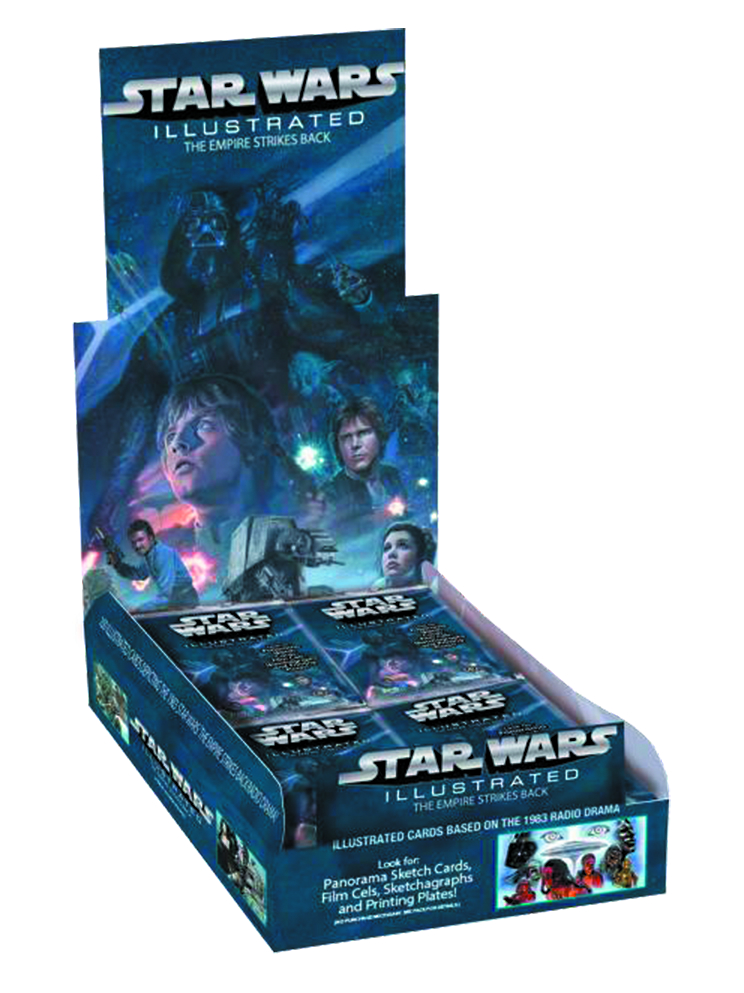 The Empire Strikes Back like never before with all-new, original artwork from top-tier artists. 145 cards retell the film's story - a 100-card base set (with 3 parallel levels), a 15-card "One Year Earlier" insert, a 10-card Movie Poster Reinterpretations insert, an 8-card embossed Carbonite Character insert, and a 12-card "The Mission: Capture Skywalker" insert. Plus, collectors will find Panorama Sketch cards, Film Cel Relic cards, printing plates, artist autographs, and Sketchagraphs. 6 cards per pack (5 Base, 1 Insert), 24 packs per box.