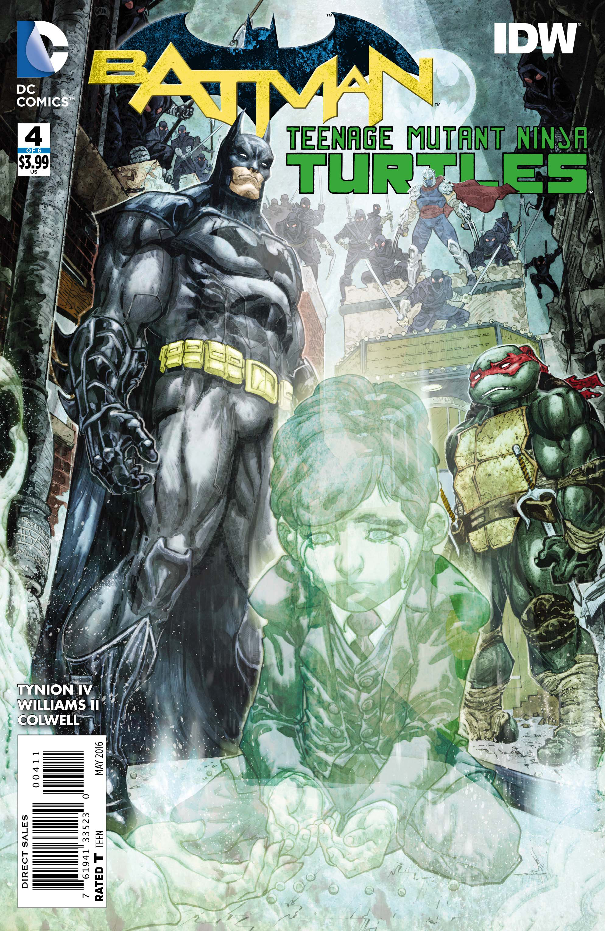 With the possibility existing that they might never get home, the Turtles take up residence at Wayne Manor. Everyone seems to be adapting except for Raphael, who still can't understand why his friends all trust this Bat-person. So Batman takes the skeptical Turtle on a trip down Crime Alley to tell Raph what led him to don the cape and cowl in the first place. Co-published with IDW.