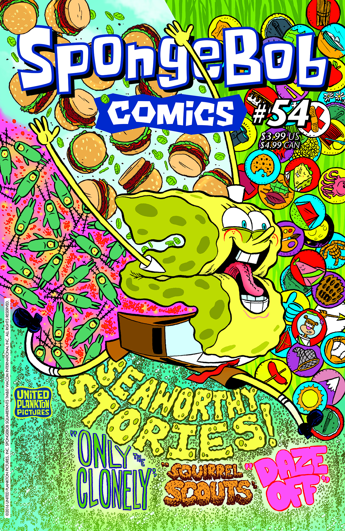 A trio of thalassic-themed tales starring everyone's favorite pelagic pals from a fleet of coastal creators! In "Squirrel Scouts," Sandy introduces SpongeBob and Patrick to the world of sash-wearing, badge-earning, and cookie-selling! Then Plankton duplicates himself in "Only the Clonely." In "Daze Off," SpongeBob's vacation day is haunted by Krabby Patty hallucinations. All these plus more natatorial nuttiness from James Kochalka, Maris Wicks, and more!
