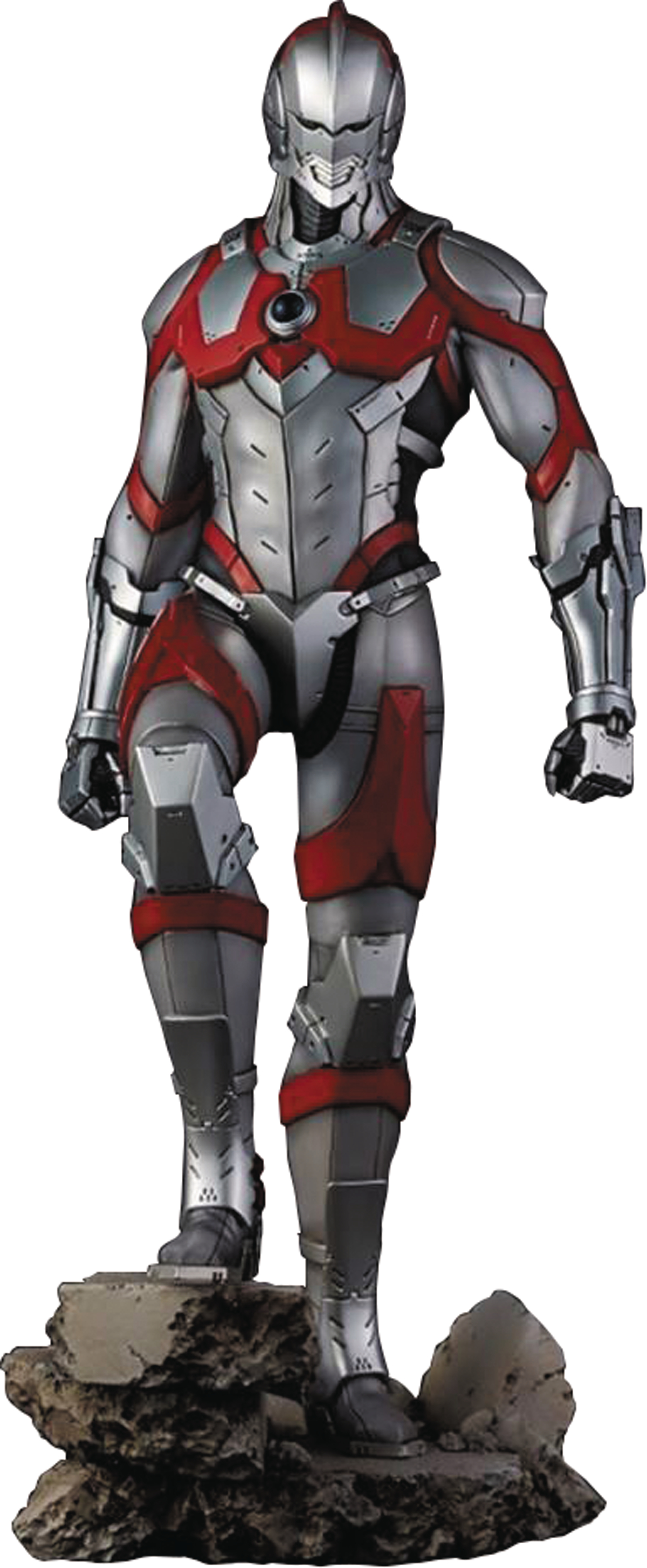 Ultraman, Shinjiro Hayata, is recreated as a highly detailed 1/6-scale statue, capturing the crisp metallic detail of his iconic suit. The sculpt features LEDs for both the color timer on the chest and eyes. The arms are interchangeable with the Spacium Blade. The Ultraman head is also interchangeable with the Shinjiro head, and the statue can be displayed unmasked, holding the mask in his left hand, which creates a totally different look. This is the ultimate Ultraman statue thoroughly supervised by the original writer/artist Eiichi Shimizu and Tomohiro Shimoguchi.