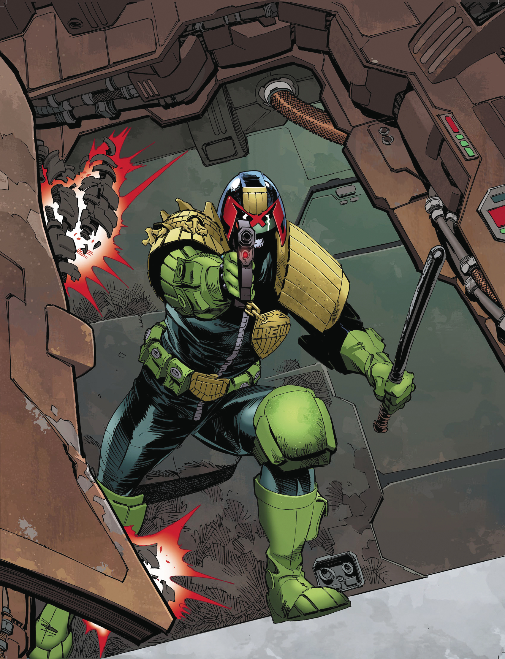 Judge Dredd: Get Jerry Sing by John Wagner and Carlos Ezquerra, and then the Mechanismo robot Judges return in