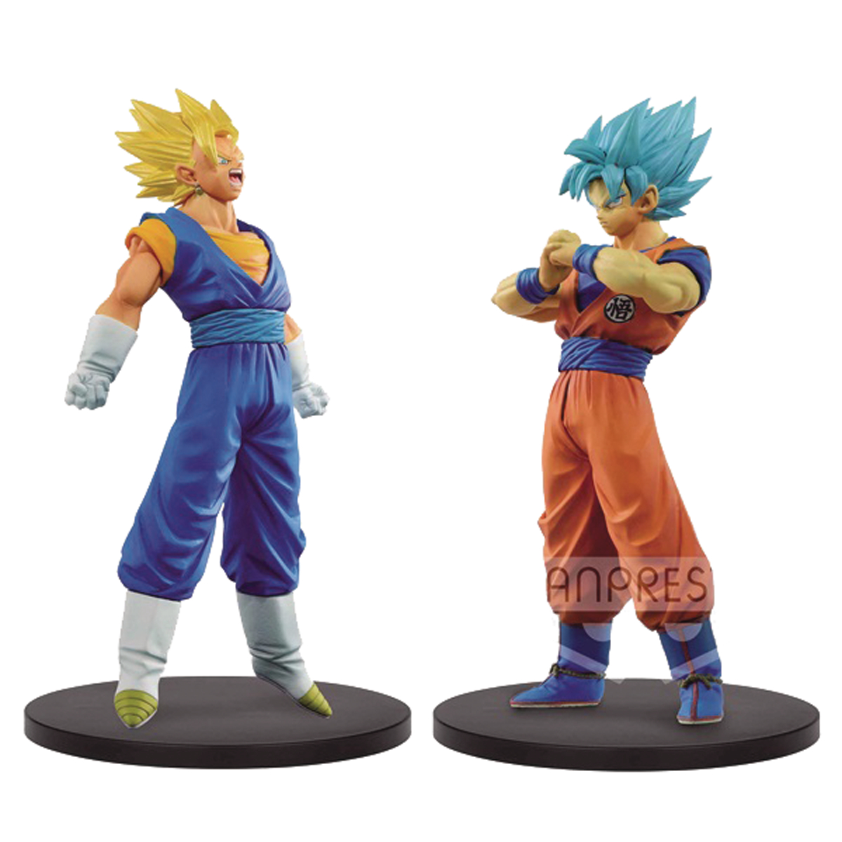 From Banpresto. These figures of Son Goku And Vegito stand approximately 7" tall and are made from PVC. Choose from Super Saiyan Vegito and Super Saiyan God Super Saiyan Goku.