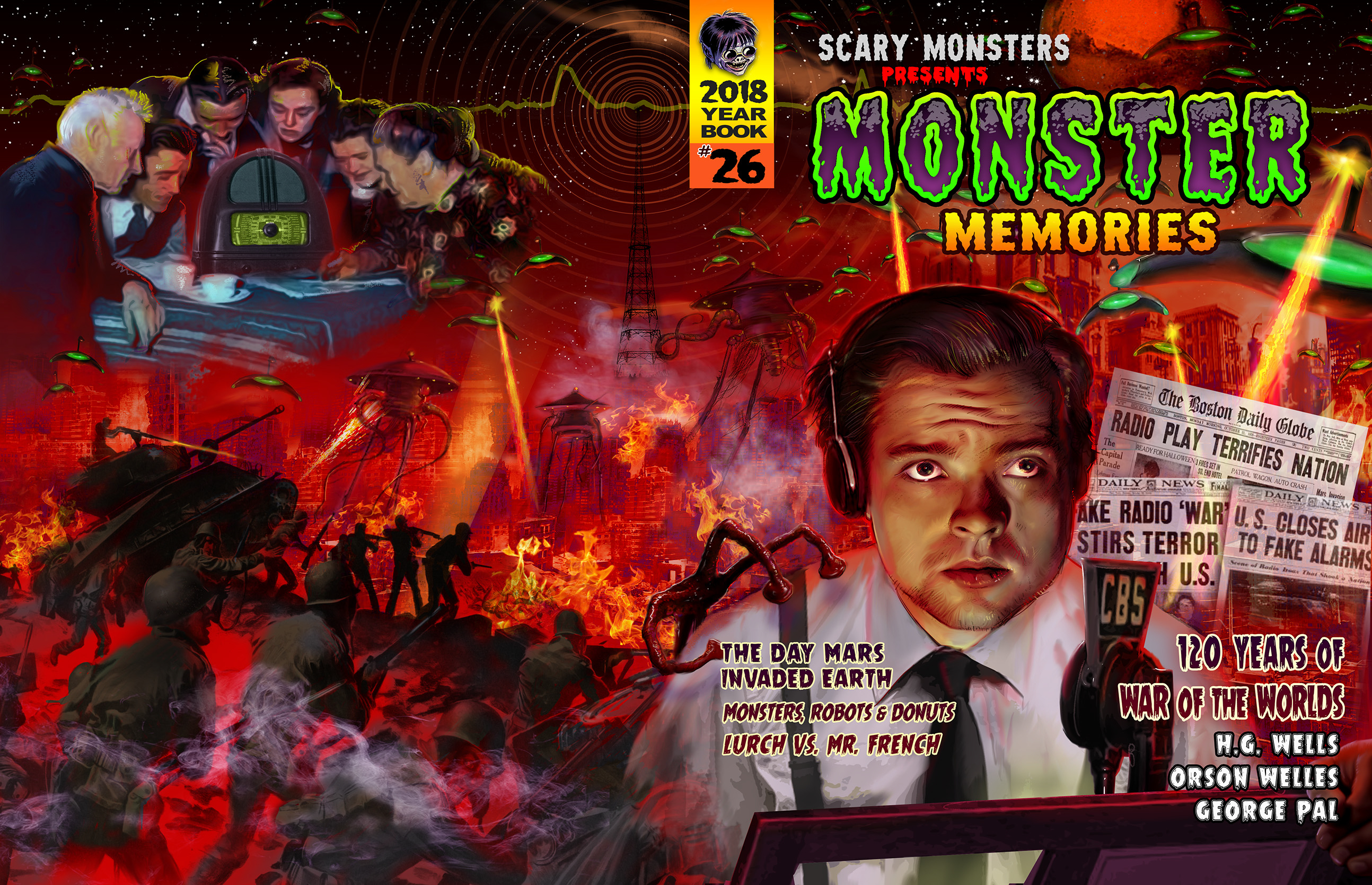 Monster Memories Yearbook #26 for 2018 is jam-packed with nostalgic reflections of the classic films, monsters, creatures, actors, directors and stories that influenced us as kids and still do today. We'll celebrate the 80th anniversary of Orson Welles' terrifyingly believable and influential