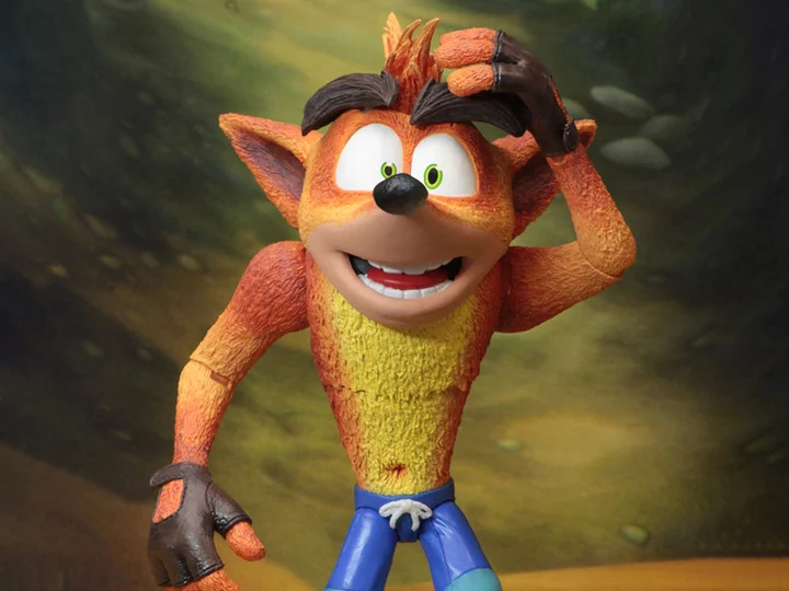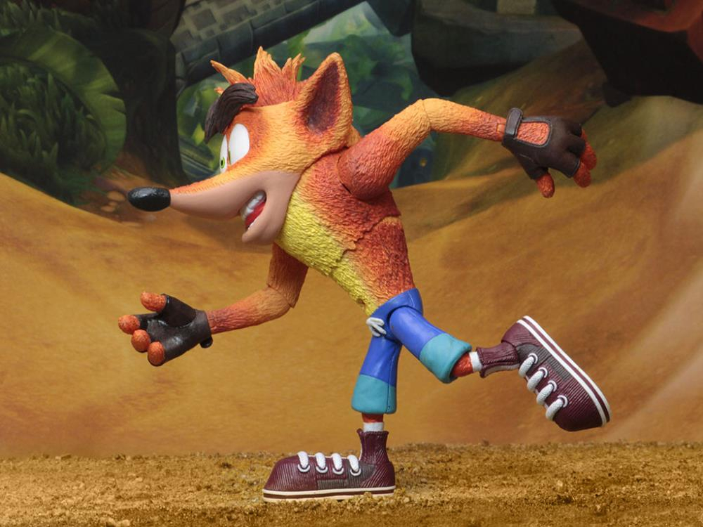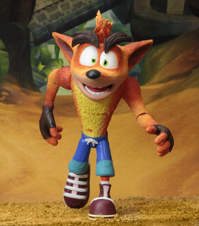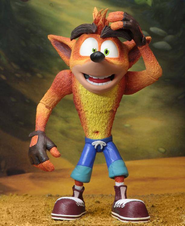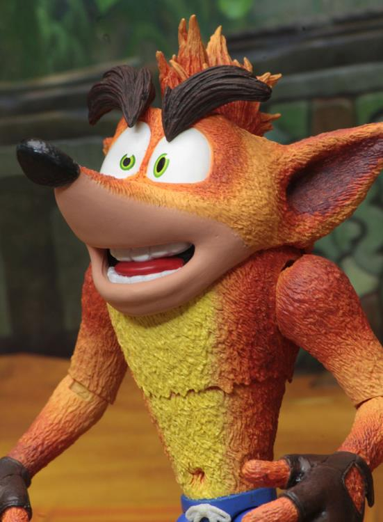 Crash Bandicoot action figures is Crash as you know and love him! This core figure stands 5 1/2" tall and features a head sculpt unique to this release. Crash has plenty of articulation for maximum wumps, but just as importantly, he's outfitted with ball-jointed eyebrows to create a variety of crazy expressions. As a bonus, tucked inside the clamshell packaging is a thick cardstock replica of a crate!