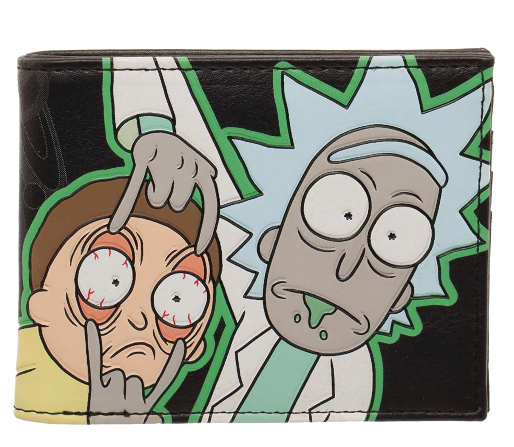 From BioWorld. Keep your Flerbos and schmeckles safe with this Rick and Morty bifold wallet. This glow-in-the-dark wallet is made from polyester and measures 3.5" H x 4.5" W