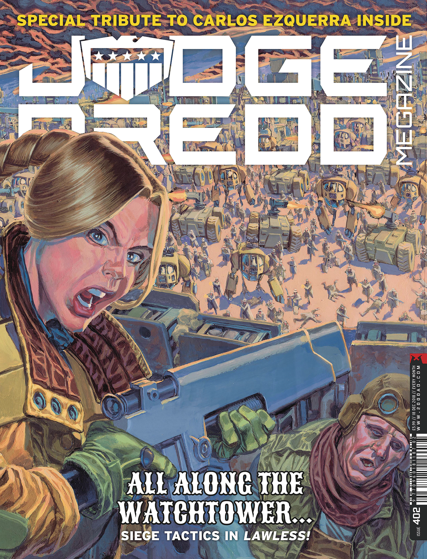 More action and adventure in the future-shocked world of Judge Dredd! Dredd goes to extreme measures to stop the lab-grown tree-creatures in "Planted"; it's Mega-City marines vs the Dark Judges in "The Torture Garden"; the alien Zhind make their move in