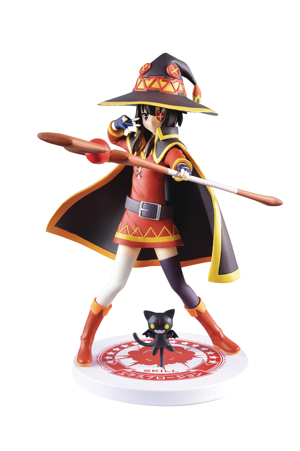 From Sega. This figure of Megumin the arch-wizard of the Crimson Magic Clan in KonoSuba features her familiar. This adorable Megumin stands about 7 3/4" tall and comes with a decorative base for display!
