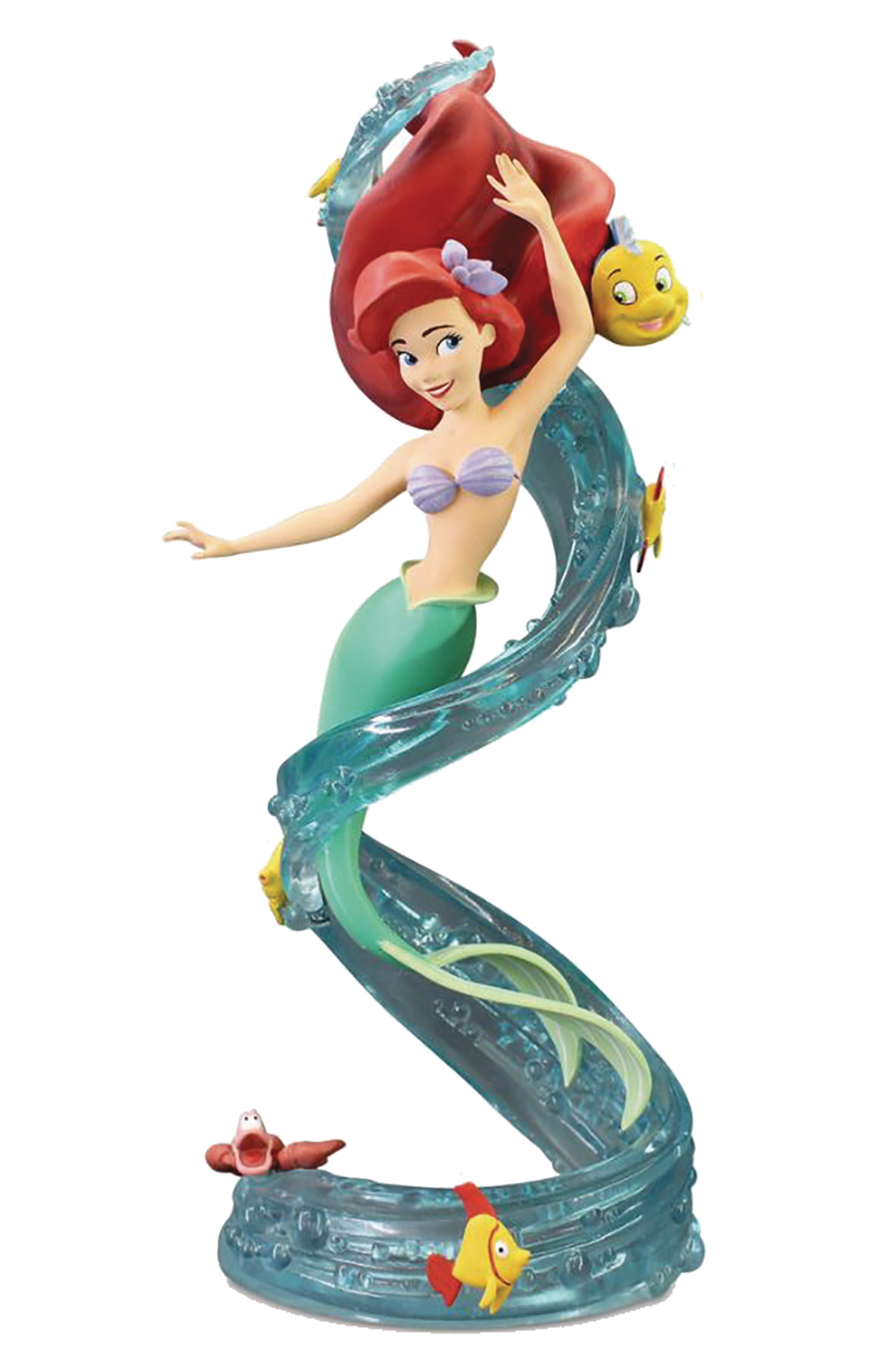 Ariel along with her seaside companions Flounder and Sebastian in this highly detailed figure from Grand Jester Studios. Stands 8 7/8" tall.