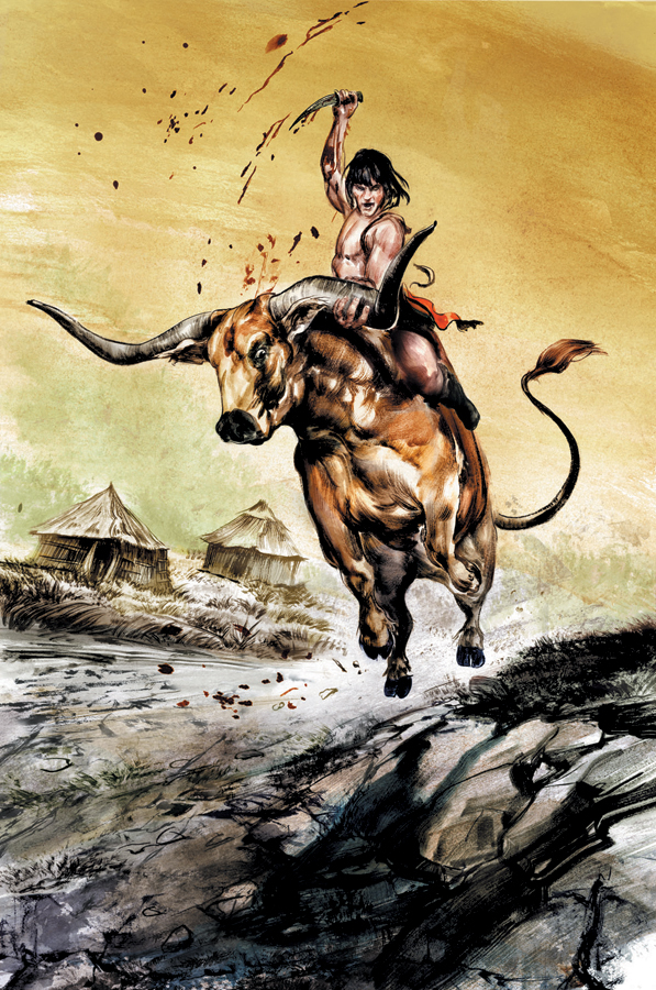 Conan with another blood-stirring installment of "Born on the Battlefield," a series of stand-alone stories chronicling Conan's portentous formative years. Spring has come to the hard hills of Cimmeria and life is eventful for Conan-the robust youth earning the affection of more than one young woman. Yet gentle days are not long-lived in this land. A storm comes on the horizon. When it breaks, Conan will discover the consequences of his choices, determining not only his own fate, but that of his entire village-featuring the formative event from Robert E. Howard's account of Conan's youth: the boy vs. the bull!