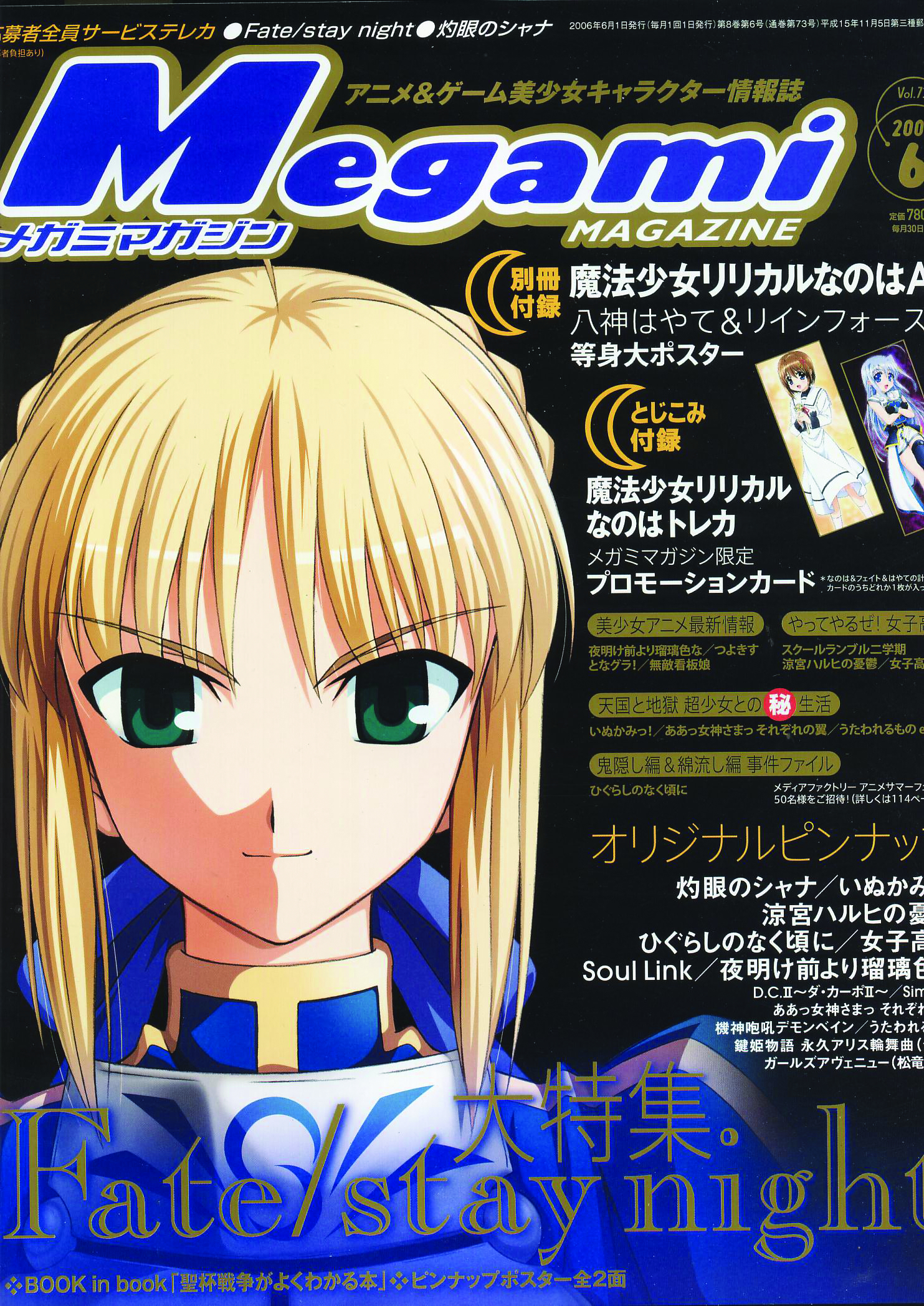 Megami is the best Japanese anime magazine for tons of free giveaways, as well as full-color artwork and posters! Includes telephone cards, punch-out "character stands", stickers, and much more! Japanese text.