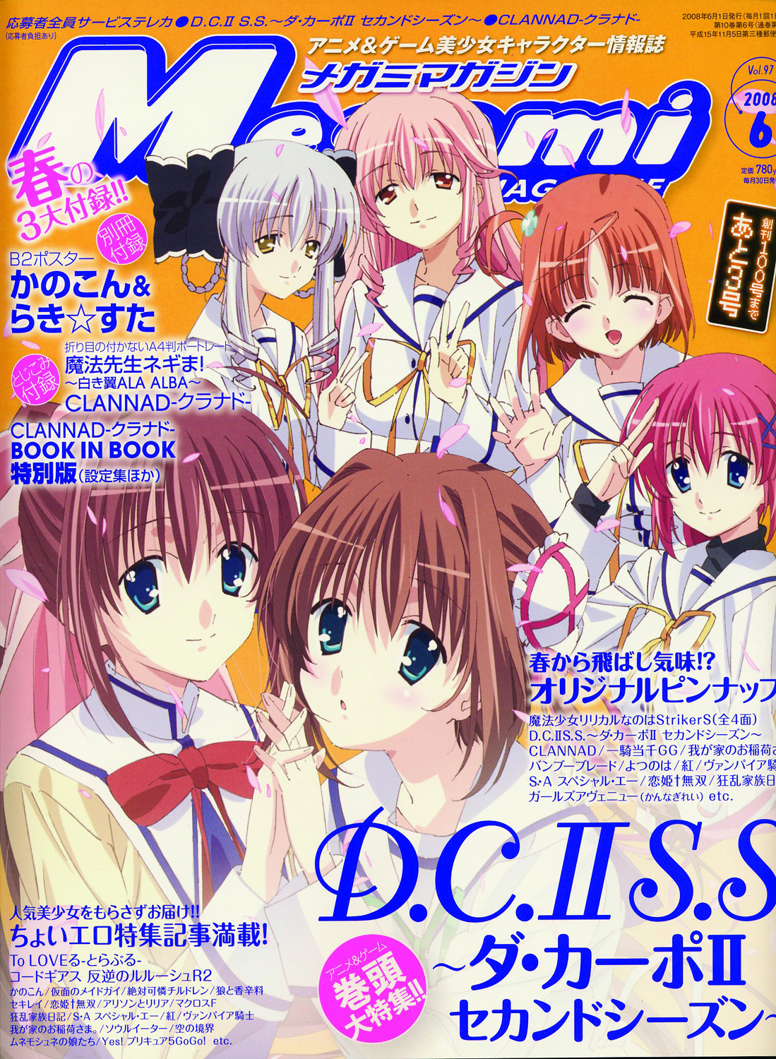 Megami is the best Japanese anime magazine for tons of free giveaways, as well as full-color artwork and posters! Includes telephone cards, punch-out "character stands," stickers, and much more! Japanese text.